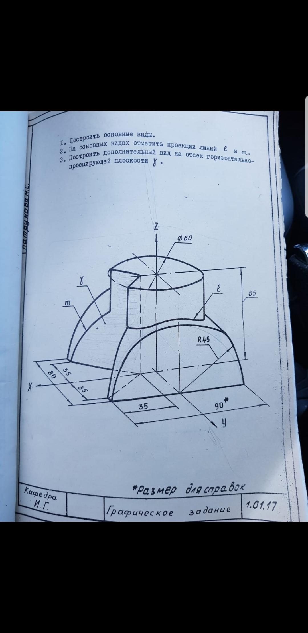 Помогите пожалуйста с 3 видами и горизонтально-проецирующим видом!!! Спустя 15 лет пошел на 2 вышку и тут инженерная графика!!!