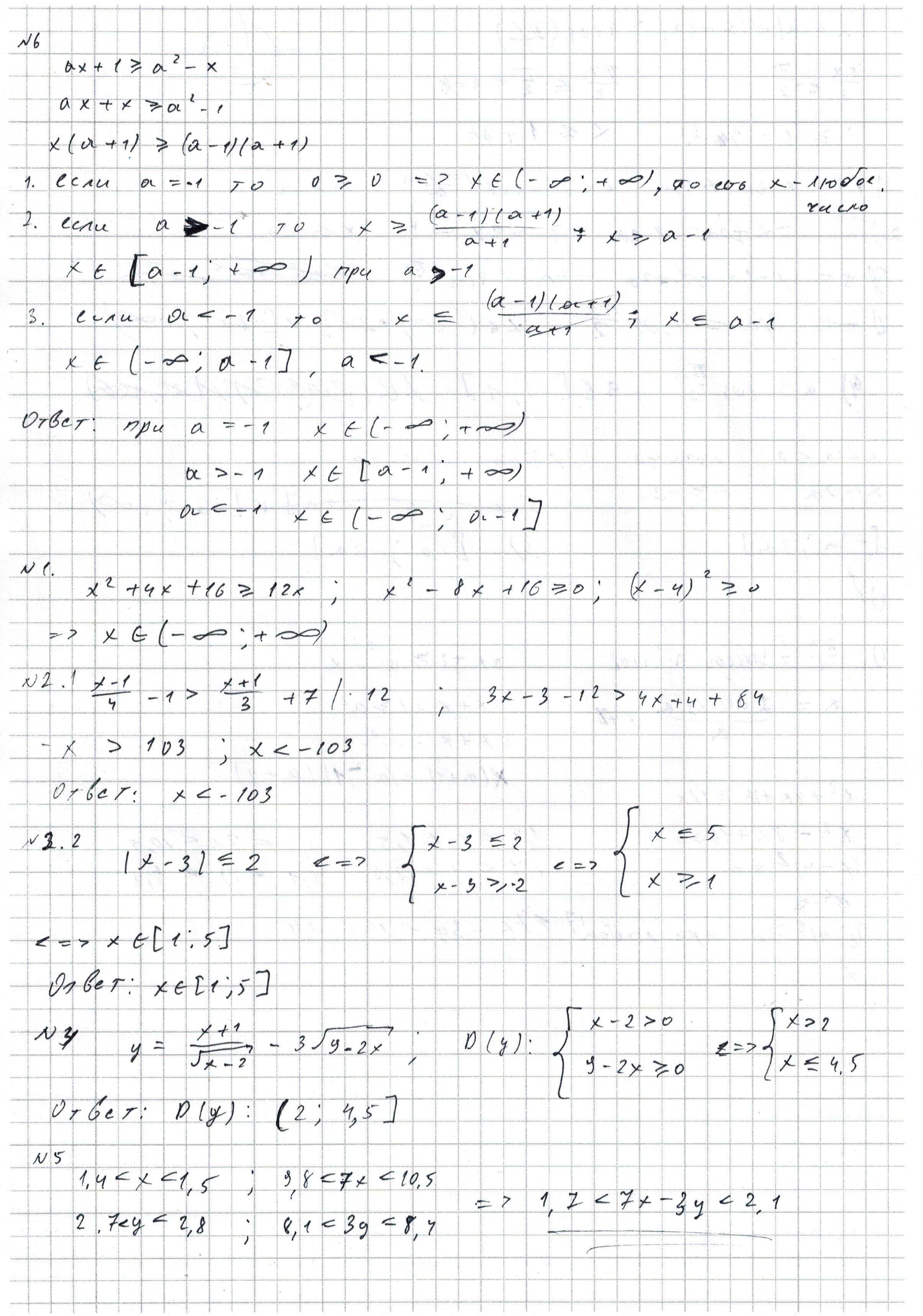 6. При всех значениях параметра я решите неравенство ax+ 1 >=(больше или равно) a2(а в квадрате) - x