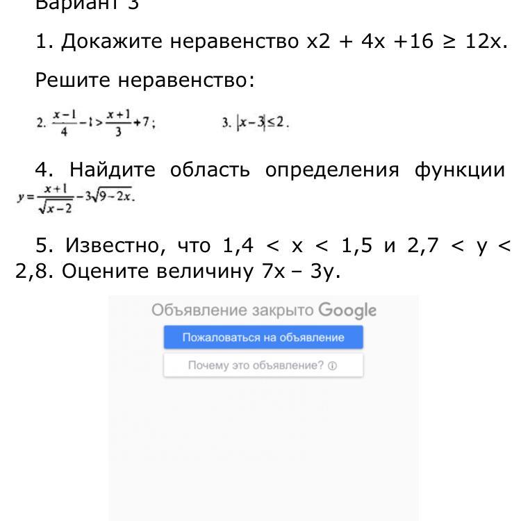 Здравствуйте! Если в 4 там -3 * корень и я правильно вас понял в 1, что там требуется доказать истинность неравенства при любом действительном х.