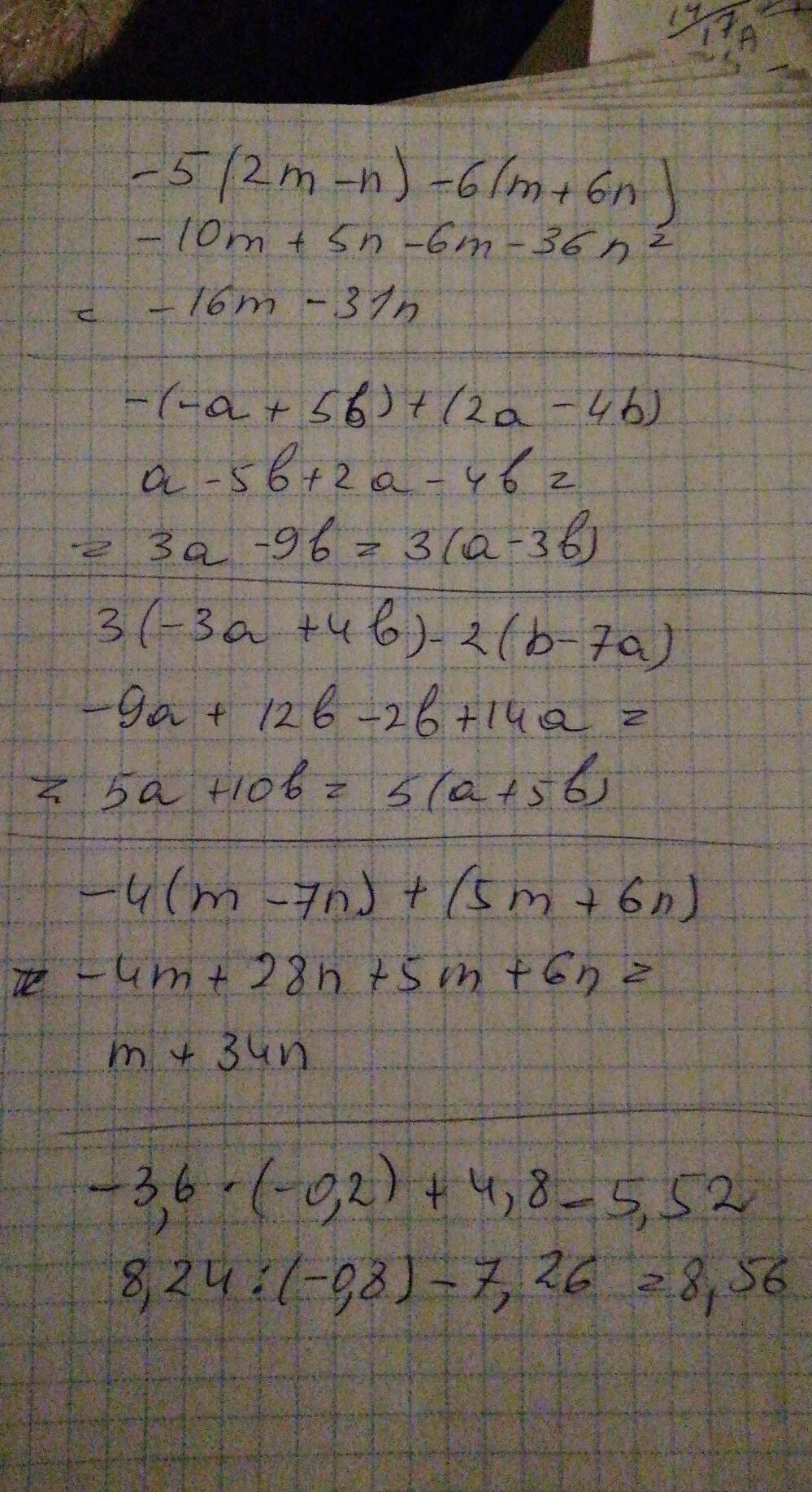 -5(2m-n)-6(m+6n)