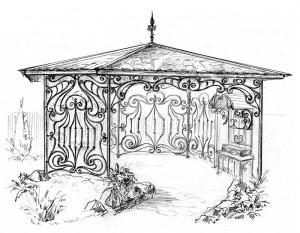 у меня на даче есть беседка.она очень красивая так как раскрашена в зеленый цвет.на этой беседке есть деревянная решеточка,по ней переплетаются растения,которые сидят вокруг нашей беседки.