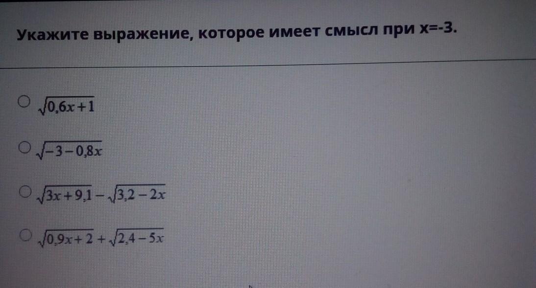 3)√3*(-3)+9,1 - √3,2-2*(-3)=√-9+9,1 - √3,2+6=√0,1 - √ 9,2 имеет смысл