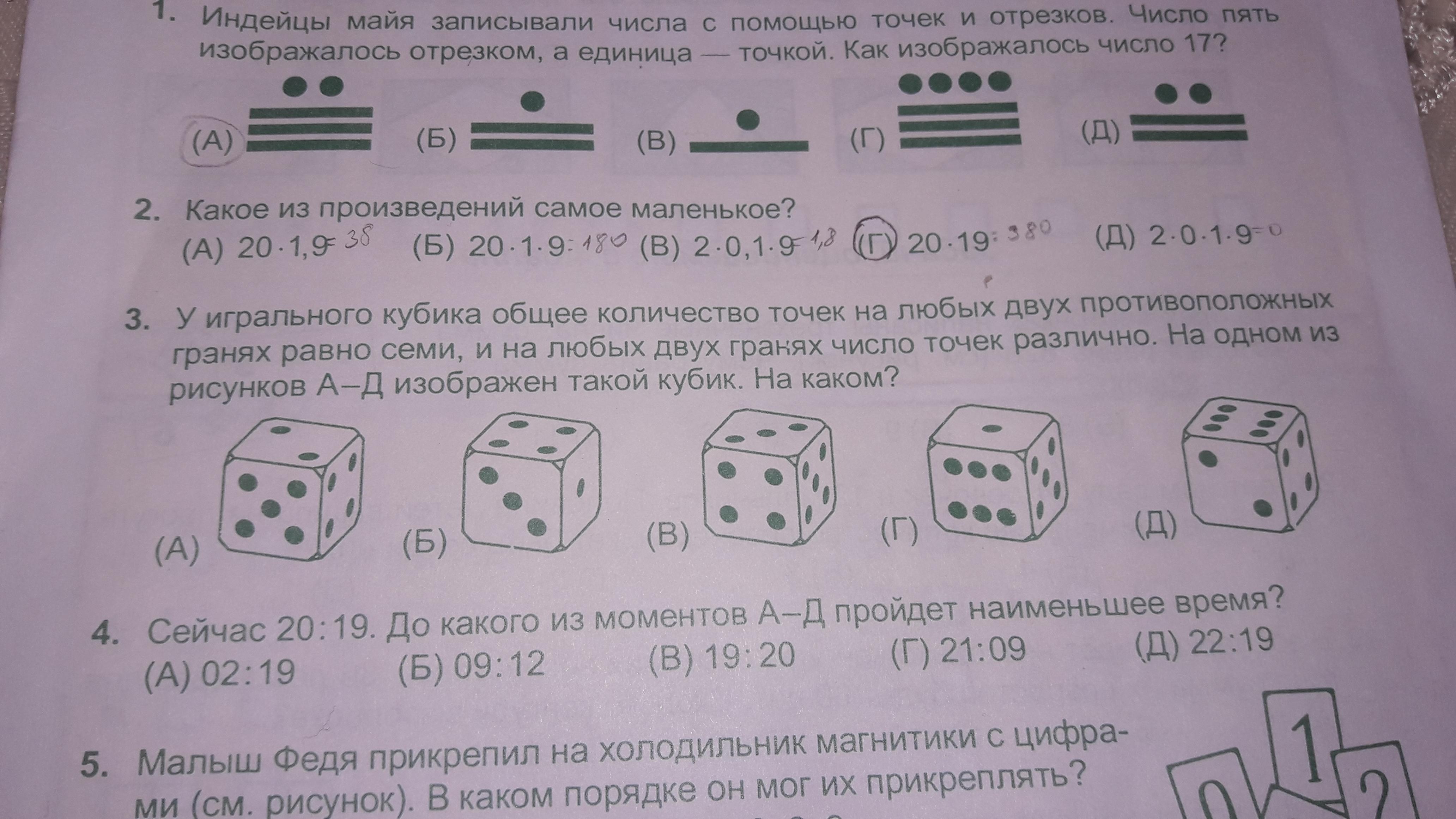у игрального кубика общее количество точек на любых двух противоположных гранях равно 7, и на любых двух гранях число точек различно. На одном из рисунков А - Д изображён такой кубик.