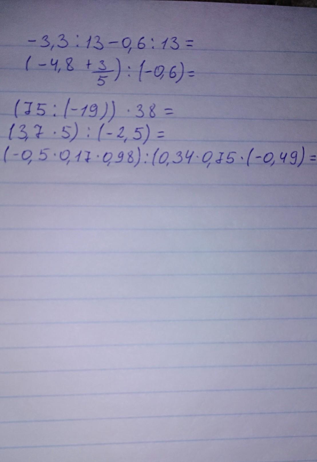 1. (-3,3-0,6) : 13 = 3,9 : 13 = 0,3