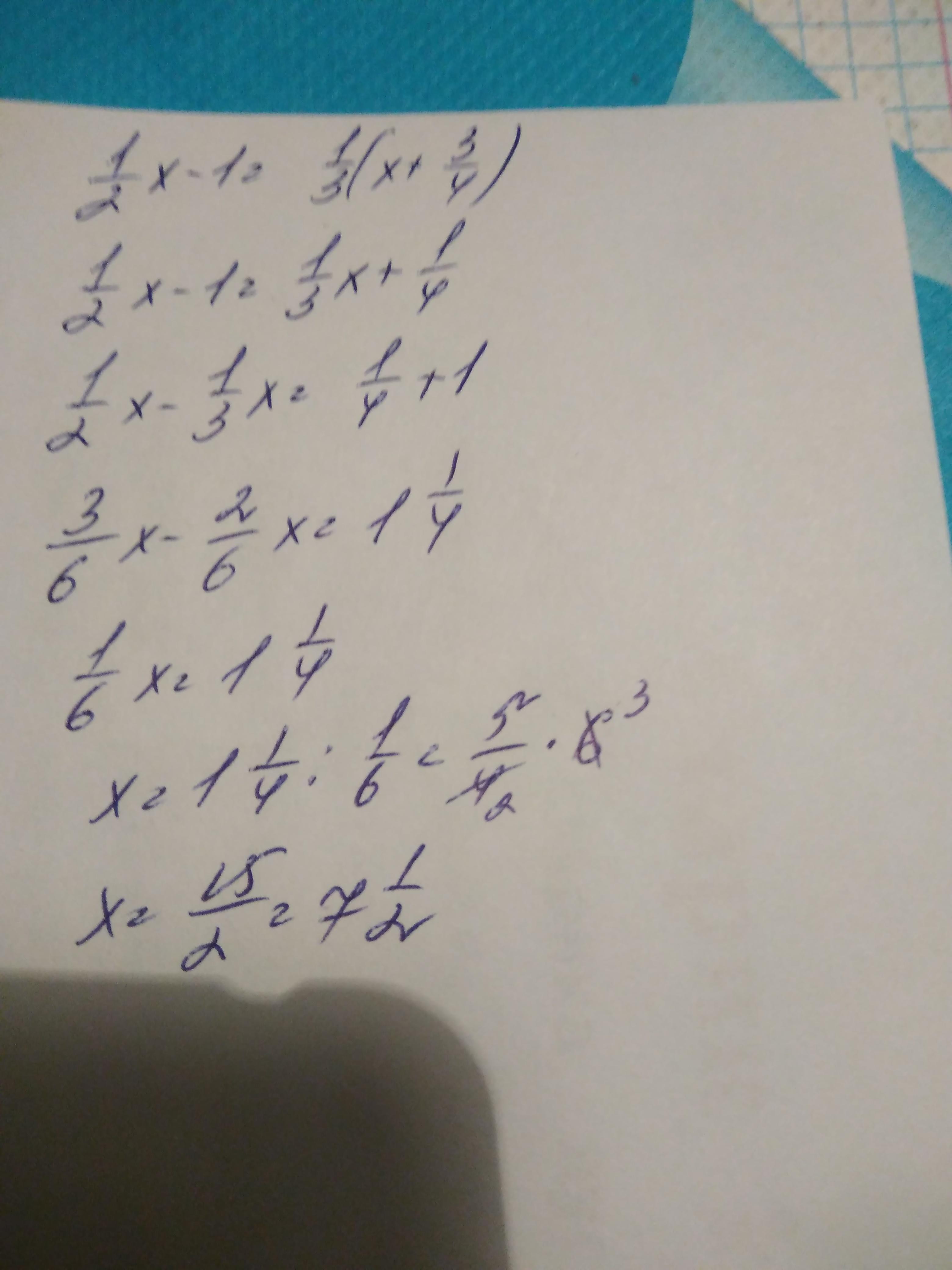 1/2х-1=1/3*(х+3/4).Пожалуйста помогите