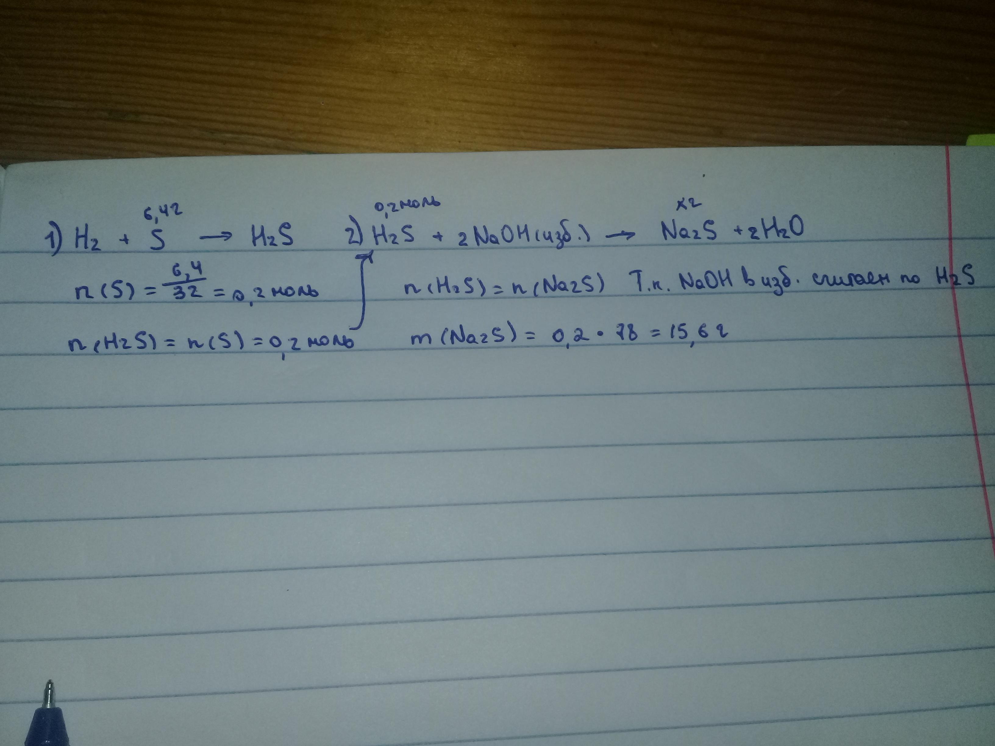 ДАЮ 30 БАЛЛОВ, ПОДРОБНОЕ РЕШЕНИЕ СРОЧНО!!! В водороде сожгли 6,4 г серы. Растворили полученное соединение в избытке гидроксида натрия. Определите массу полученной соли.