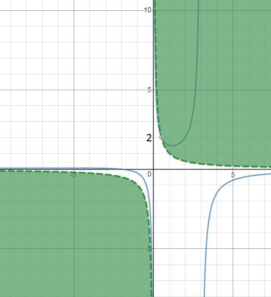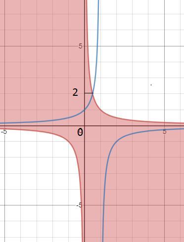 ax > 1 ⇒ a> 1/x- внешняя часть гиперболы a = 1/x