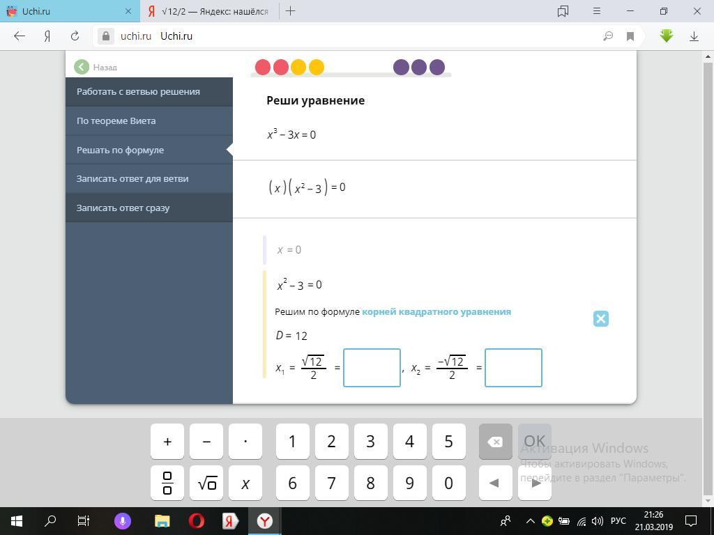sqrt{12 }  div 2 = 2 sqrt{3}  div 2 =  sqrt{3}  \  -  sqrt{12}  div 2 =  -  sqrt{3}
