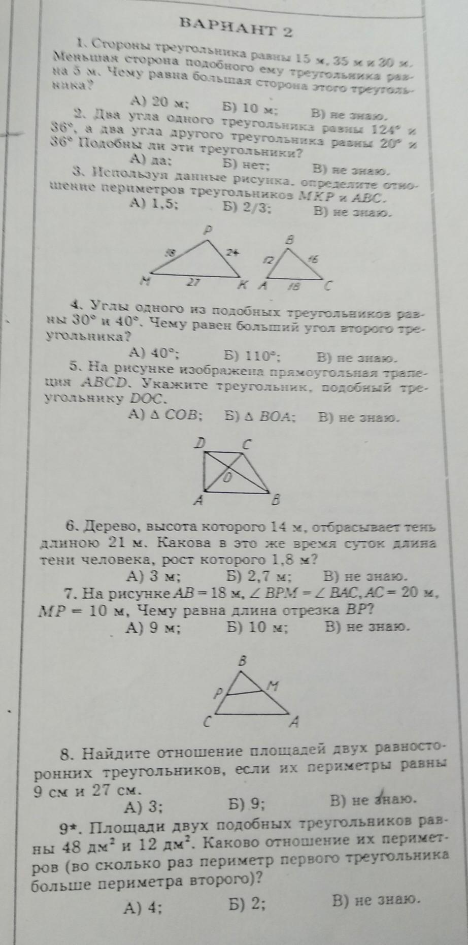 Стороны треугольника равны 15м, 35м и 30м. Меньшая сторона подобного ему треугольника равна 5 м. Чему равна большая сторона этого треугольника?