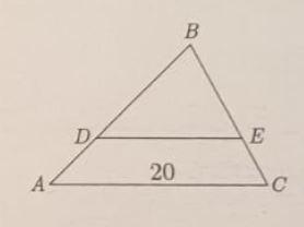 В треугольнике ABC проведен отрезок DE, параллельный стороне AC. Известно ,что Sdbe=9 см^2, Sadec= 7 см^2 и AC=20 см. Вычислите DE.