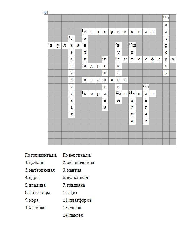 Кроссворд на 15 слов 5 класс по темам: Земная кора - верхняя часть литосферы; Горные породы, минералы и полезные