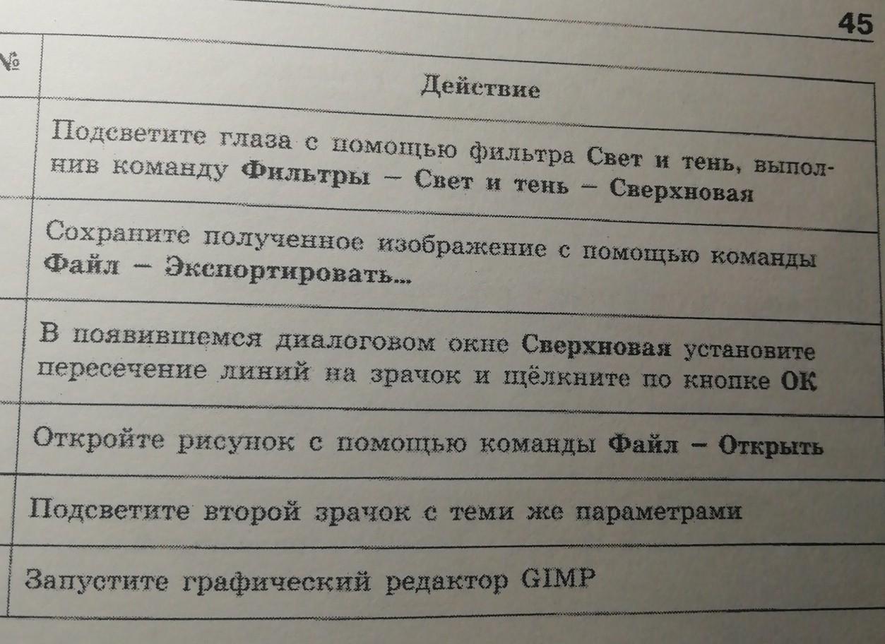 ПОМОГИТЕ ДАМ 35 БАЛОВ. Раставив цифры от 1 до 6 в первом столбце таблицы, восстановите последовательность действий, выполненных в графическом редакторе GIMP для подсветки на рисунке Вильбера. (зверёк неизвестной породы по кличке Вильбер, придуманный Туомасом Куосманеном, - талисман программы GIMP.)