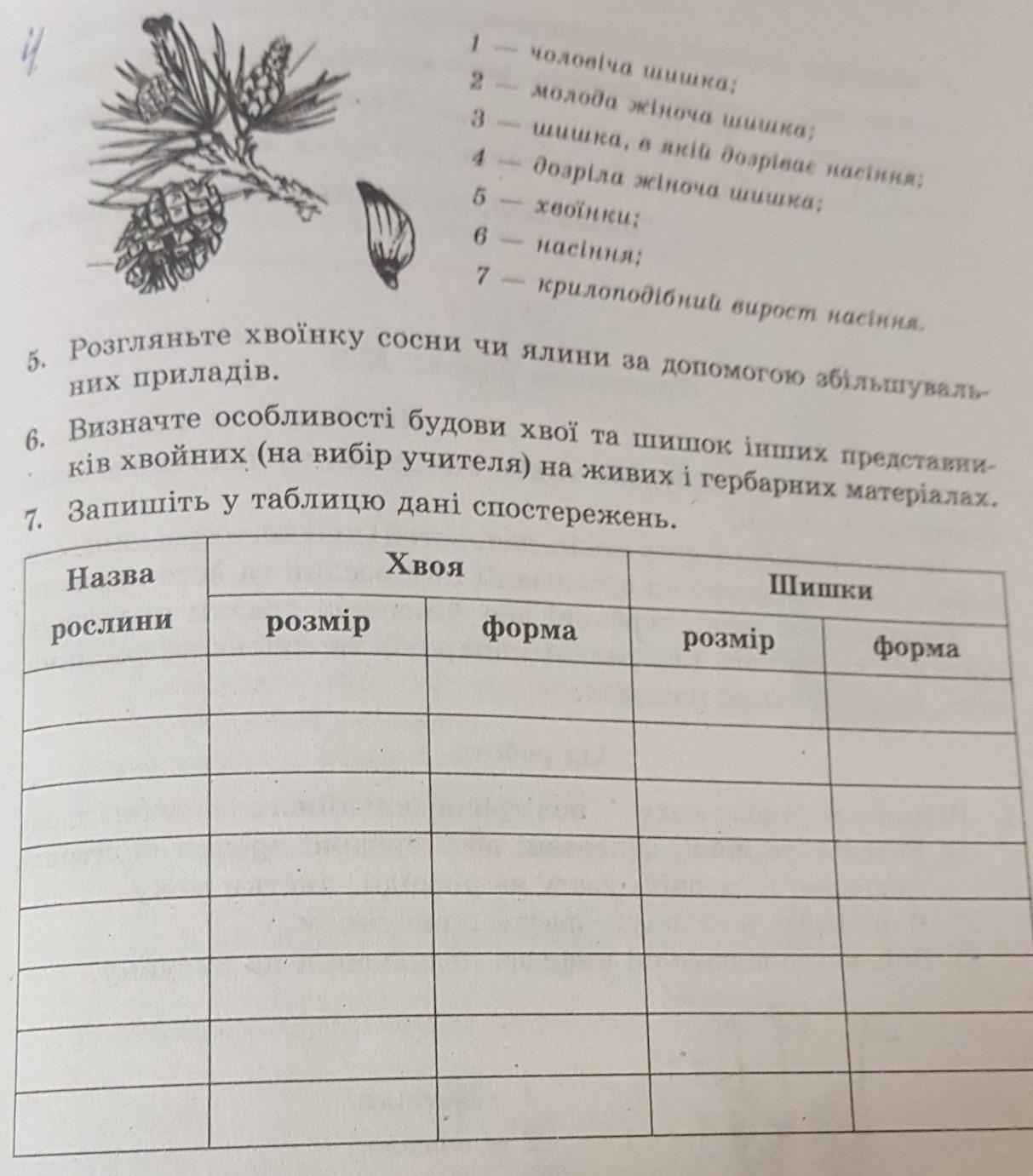 Дозріла жіноча шишка велика та розкрита, крилоподібний вирост насінини зображено окремо від гілки.Сама маленька шишка в якій дозріває насіння, трохи більша молода жіноча, хвоя це голочки, чоловічі шишки біля самої маленької. Насіння кінчик крилоподібного виросту.