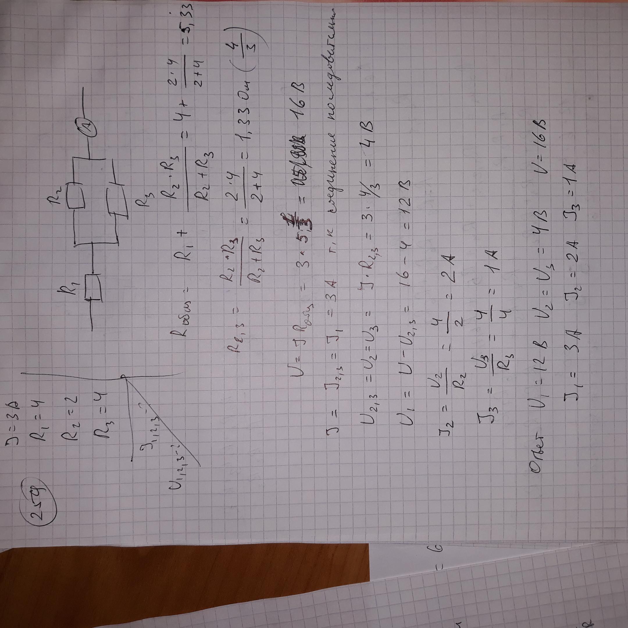259. Найдите токи и напряжения на сопротивлениях R, = 4 Oм, R, = 2 Ом и R3 = 4 Ом, если амперметр пока- зывает ток 3 А