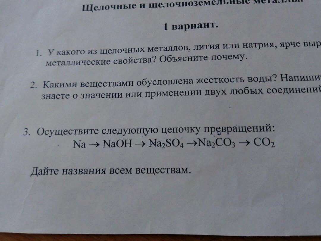 1. У натрия ярче выражены металлические свойства. Потому что у натрия металлические свойства в группе возрастают сверху вниз.