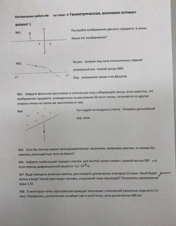 Задание 1. постройте изображение данного предмета в линзе. какое это изображение?