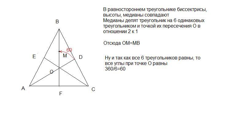 в правильном треугольнике ABC высоты AD,BF и CE пересекаются в точке O. При повороте с центром в точке O точка D отображается на точку M такую, что M принадлежит BO и BM=MO. Тогда угол поворота равен...