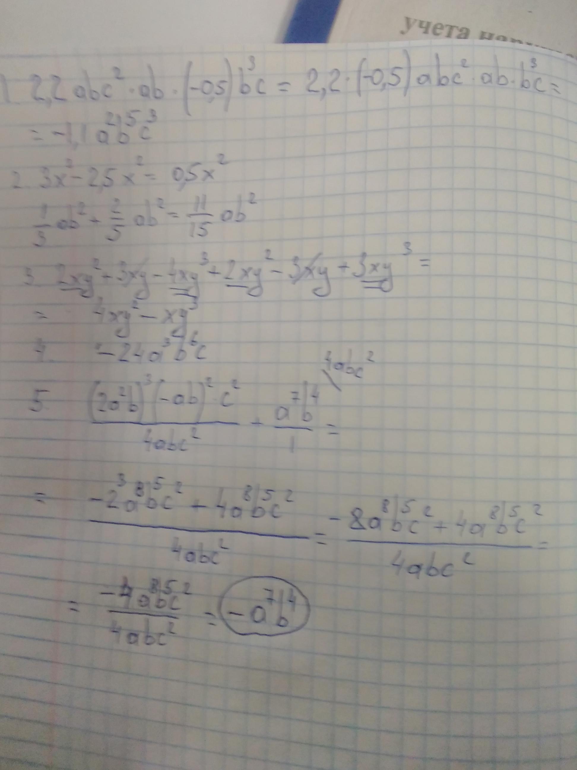 2,2abc^2 * ab * (-0,5)b^3c = -1,1a^2b^5c^3
