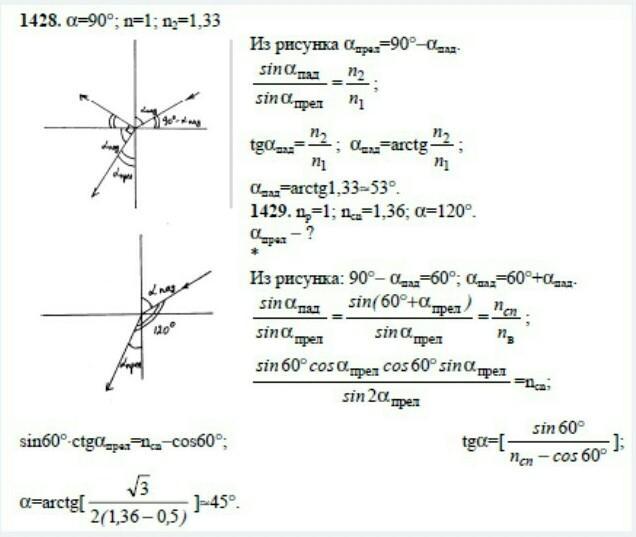 Визначте кут падіння променя в повітрі на поверхню води, якщо кут між заломленням і відбитим променями дорівнює 90°