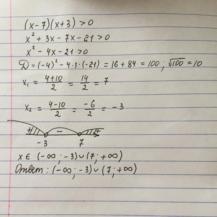 Ответ: (-∞;-3)∪(7;+∞)