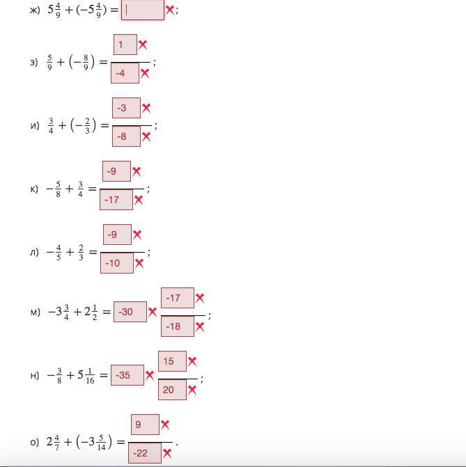 0, -4/9, 1/12, 1/8, -2/15, -5/4, 4 целых 11/16, -11/14