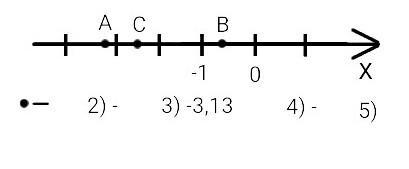 На координатной прямой отмечены точки A, B и C.Установите соответствие между точками и их координатами.