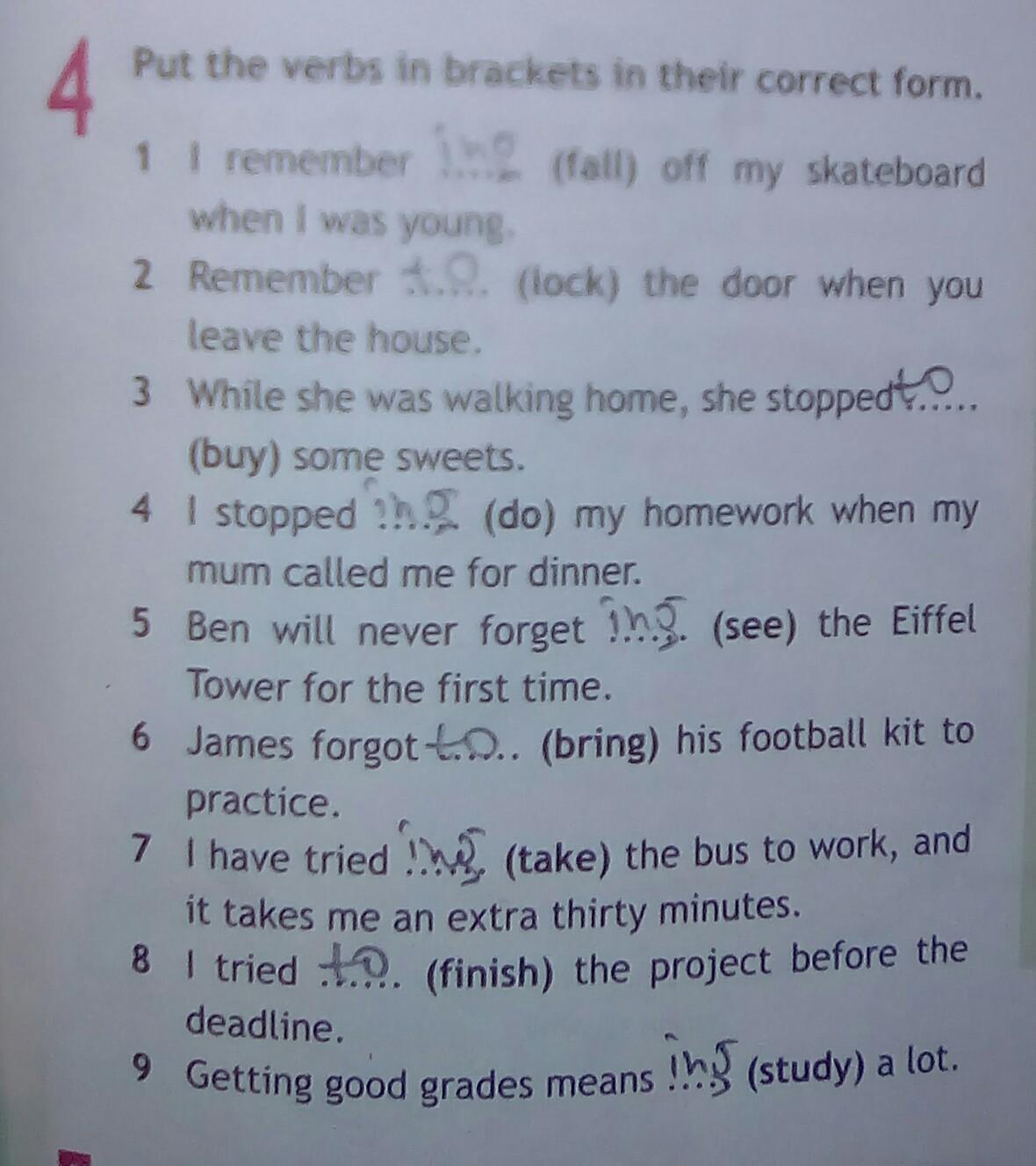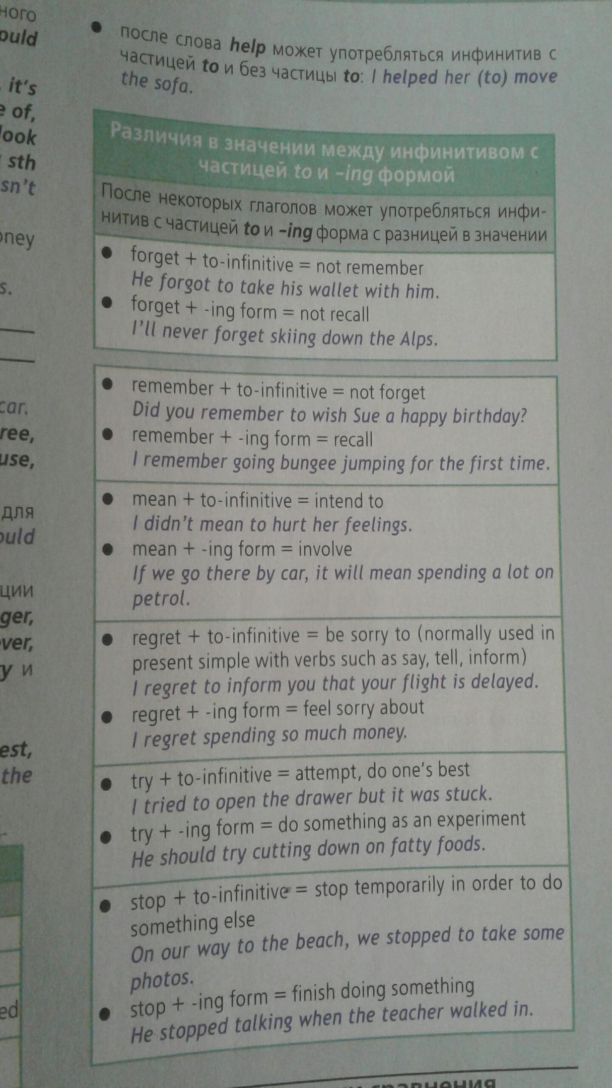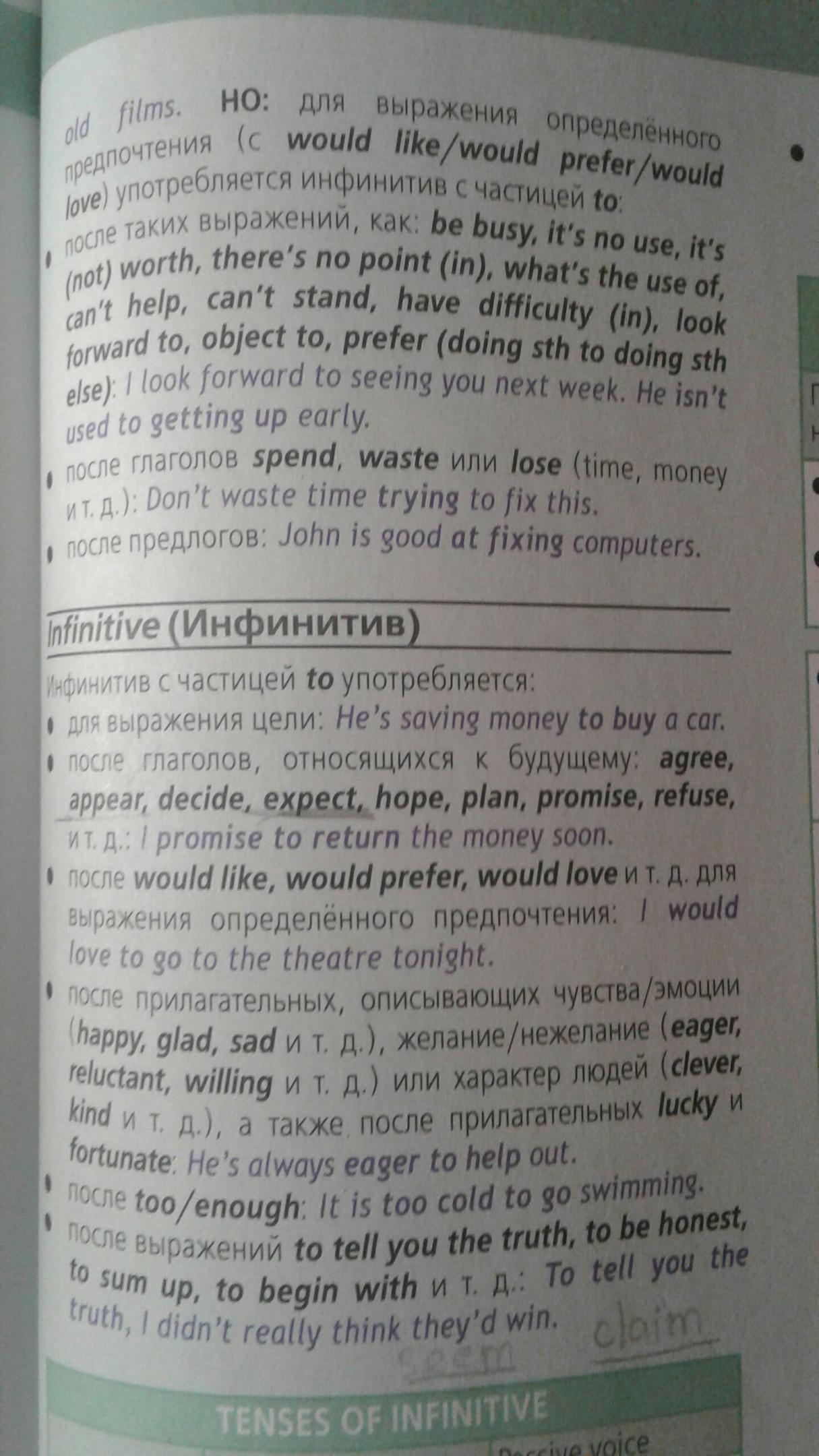 Почему ставиться to или ing. Там по правилам как-то. Пожалуйста помогите. 5 и 4 задание. Ваулина 8 класс страница 79.