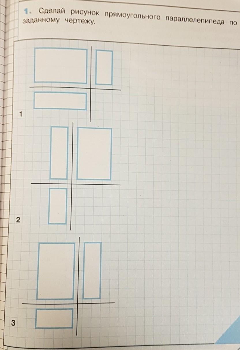 Сделай рисунок прямоугольного параллелепипеда по заданному чертежу. Помогите пожалуйста поскорее ! БЫСТРЕЕЕЕ ОЧЕНЬ ЛЕГКО, НО Я НЕ МОГУ ВОПРОС ДЛЯ 4 КЛАССА
