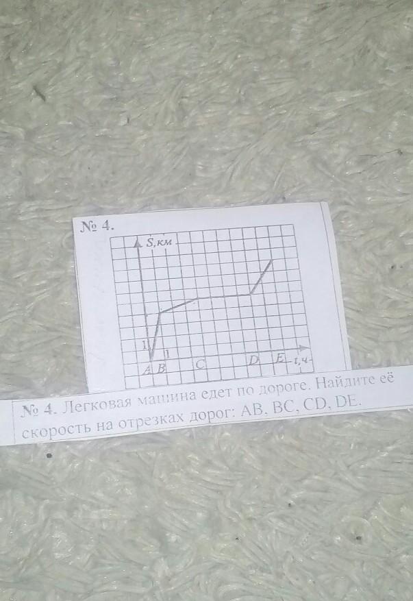 Vab=4/1=4 км/ч, Vbc=1/3=0.333 км/ч, Vcd=0, Vde=3/2=1.5 км/ч