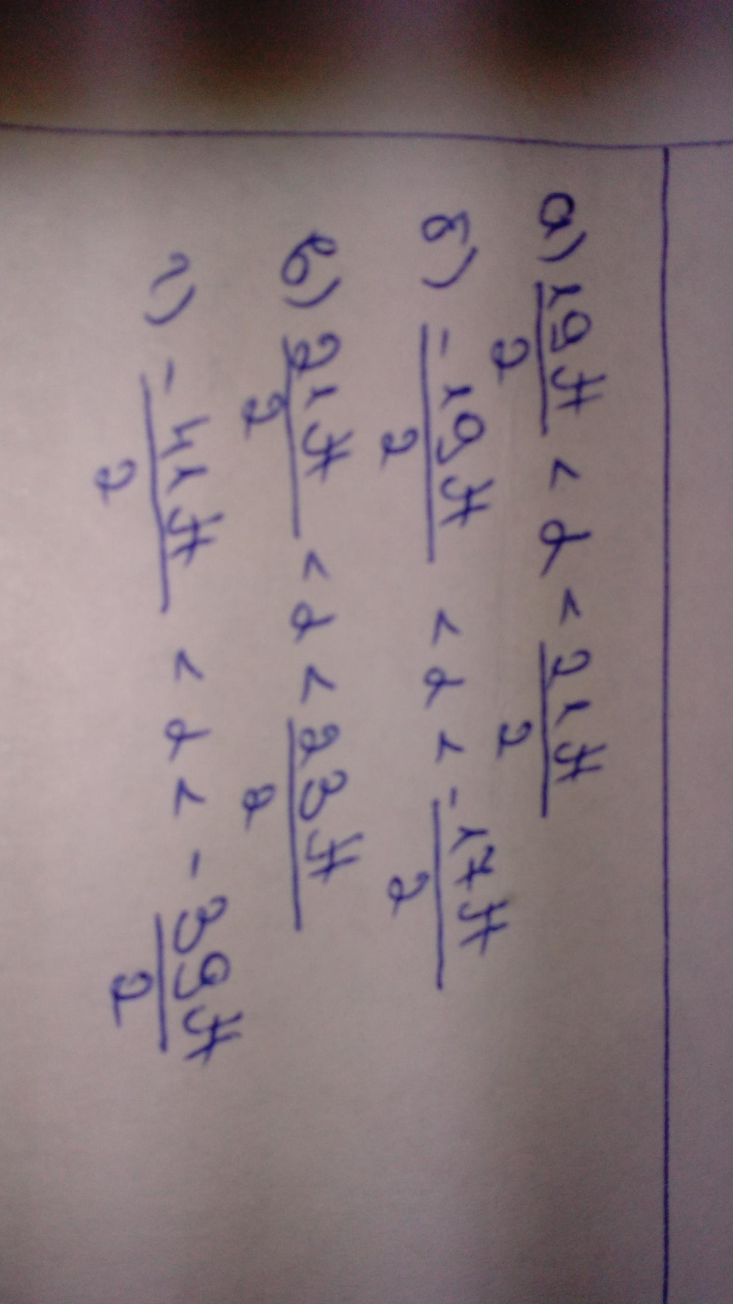 б) -19*π/2==π/2 (потому что отриц угол по часовой), а>π/2 по часовой - это 1 четверть, -17*π/2==3*π/2, а<3*π/2 - 4 четверть, знаки функций такие же, как в а)
