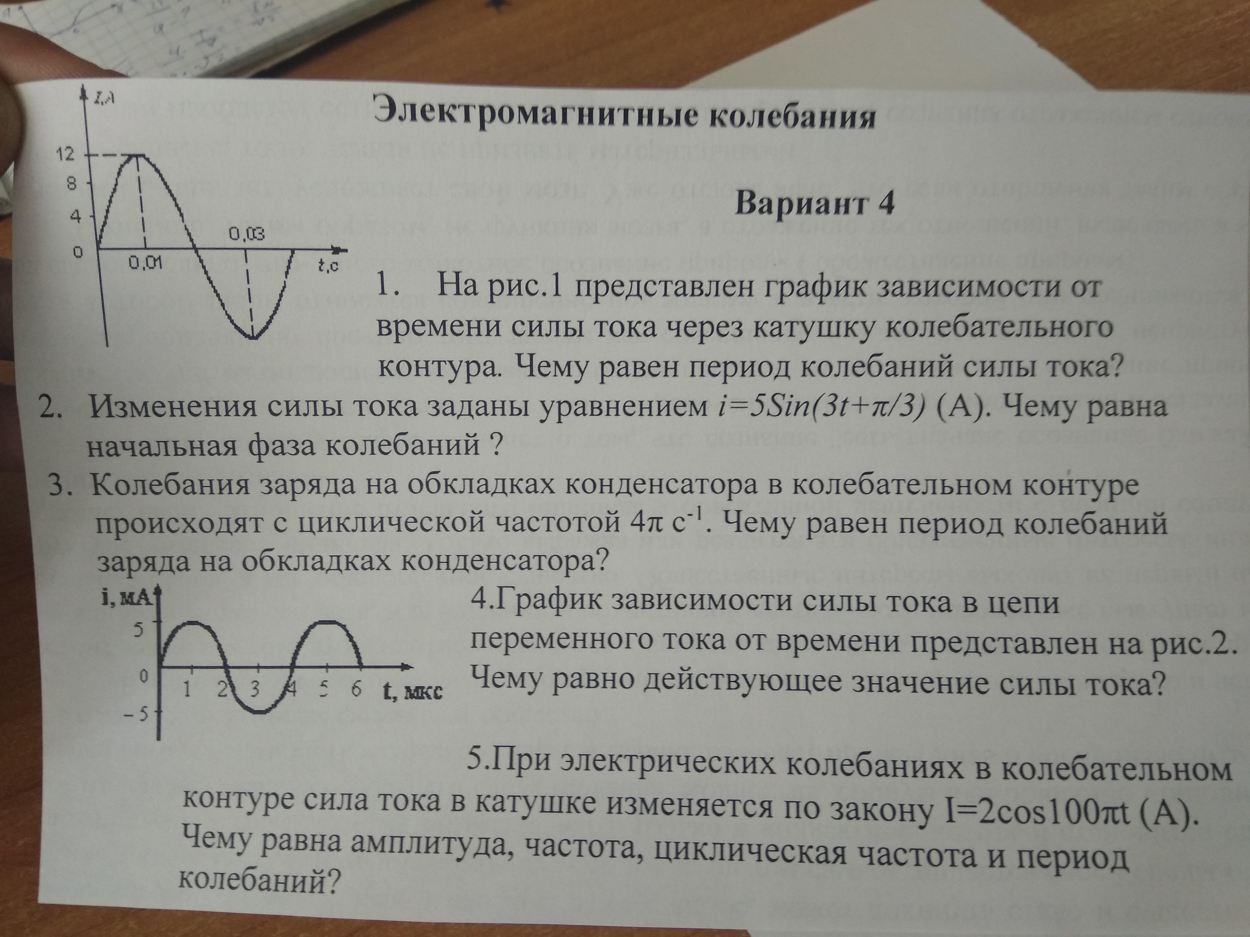 1) 0,04 c 2) pi/3 3) T= 2*pi/w=0,5 c