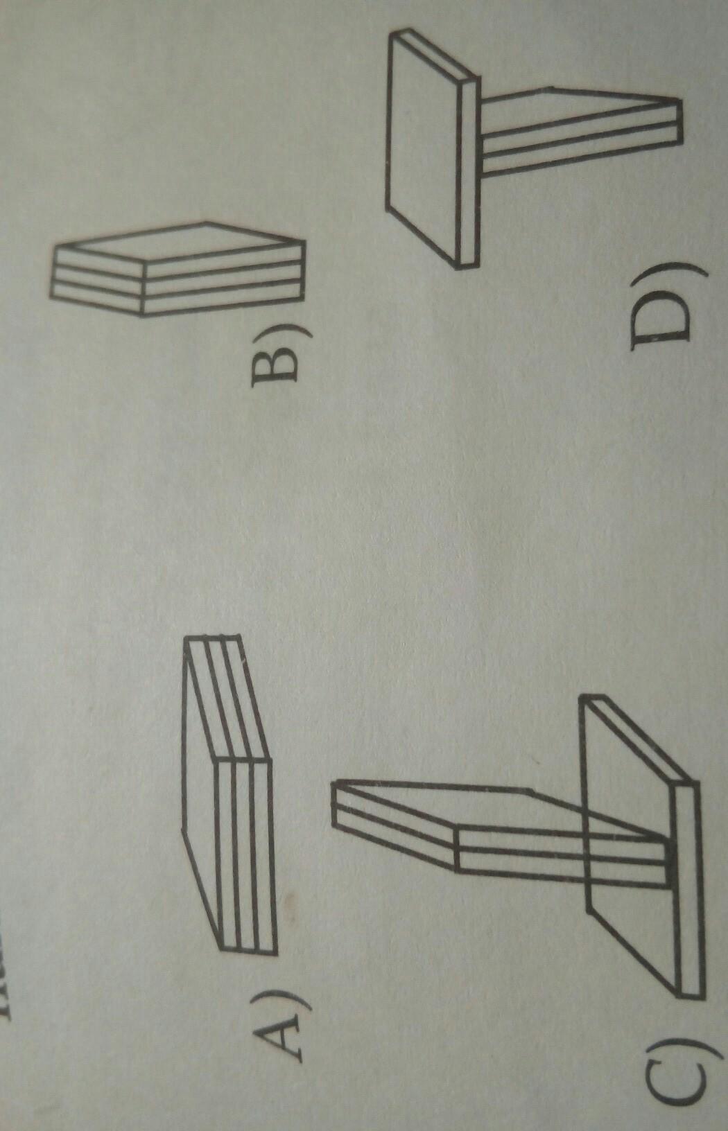 Три одинаковых бруска располагают на столе как показано на рисунках. В каком случае давление на поверхности наибольшее?