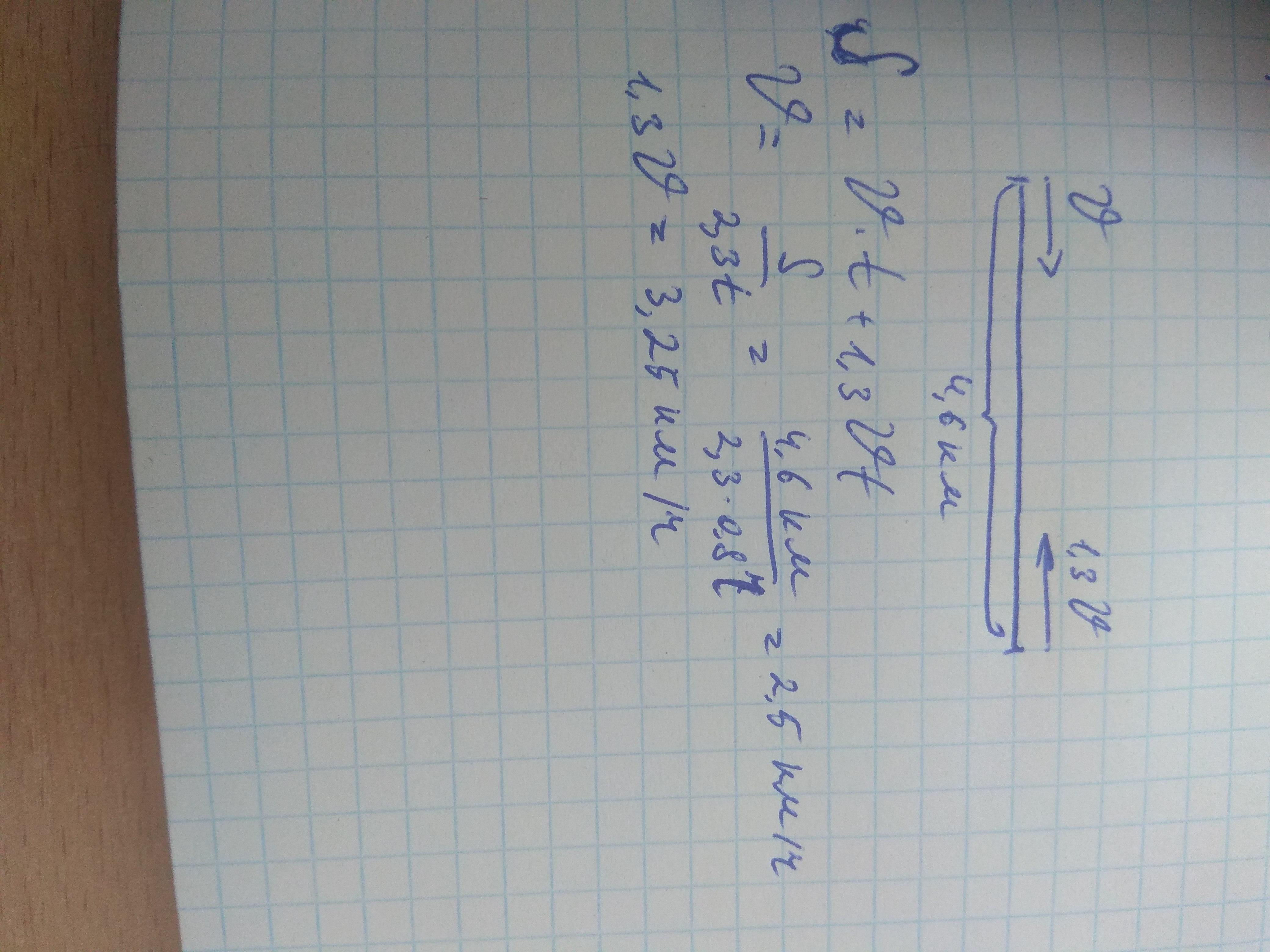 2,5*1,3=5,75-2,5=3,25 км/ч скорость второго