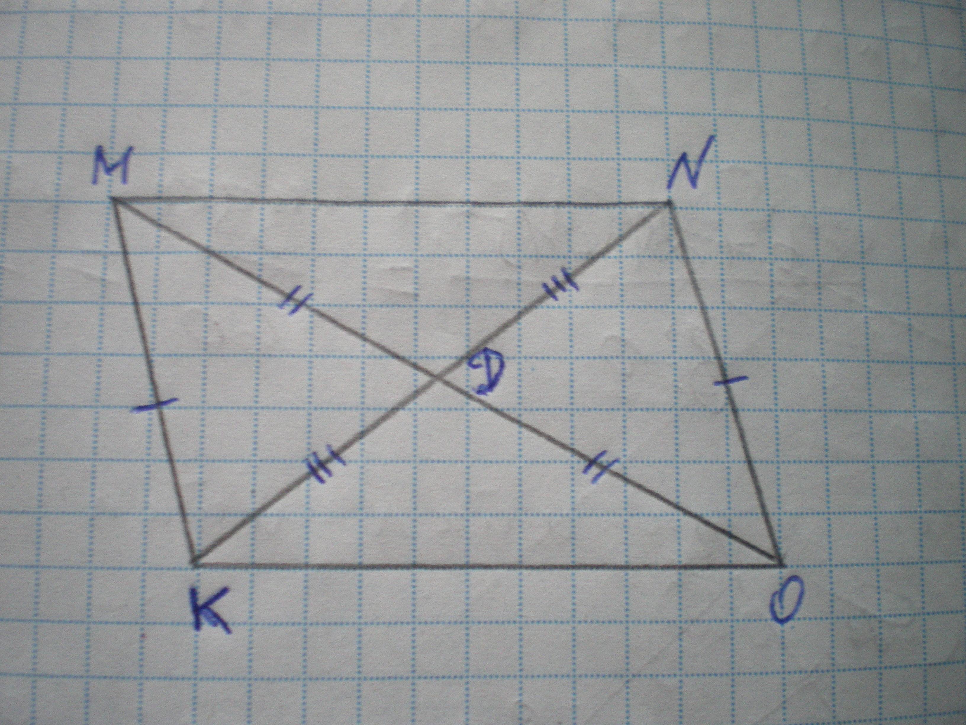 1.в параллелограмме KMNO диагонали пересекаются в точке D.Докажите ,что треугольник KDM=ТРЕУГОЛЬНИКУ NDO