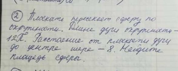 ее радиус из прямоугольного треугольника составленного из радиуса окружности сечения ,расстояния от плоскости до центра и радиуса сферы