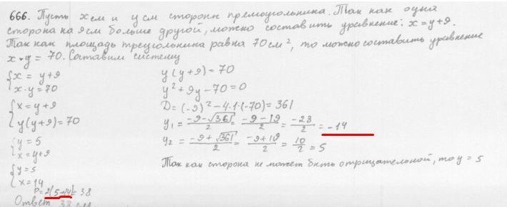 Там снизу написано,что корень не может быть отрицательный. Значит у=5. А х=у+9(вместо у подставляем 5) =5+9=14.