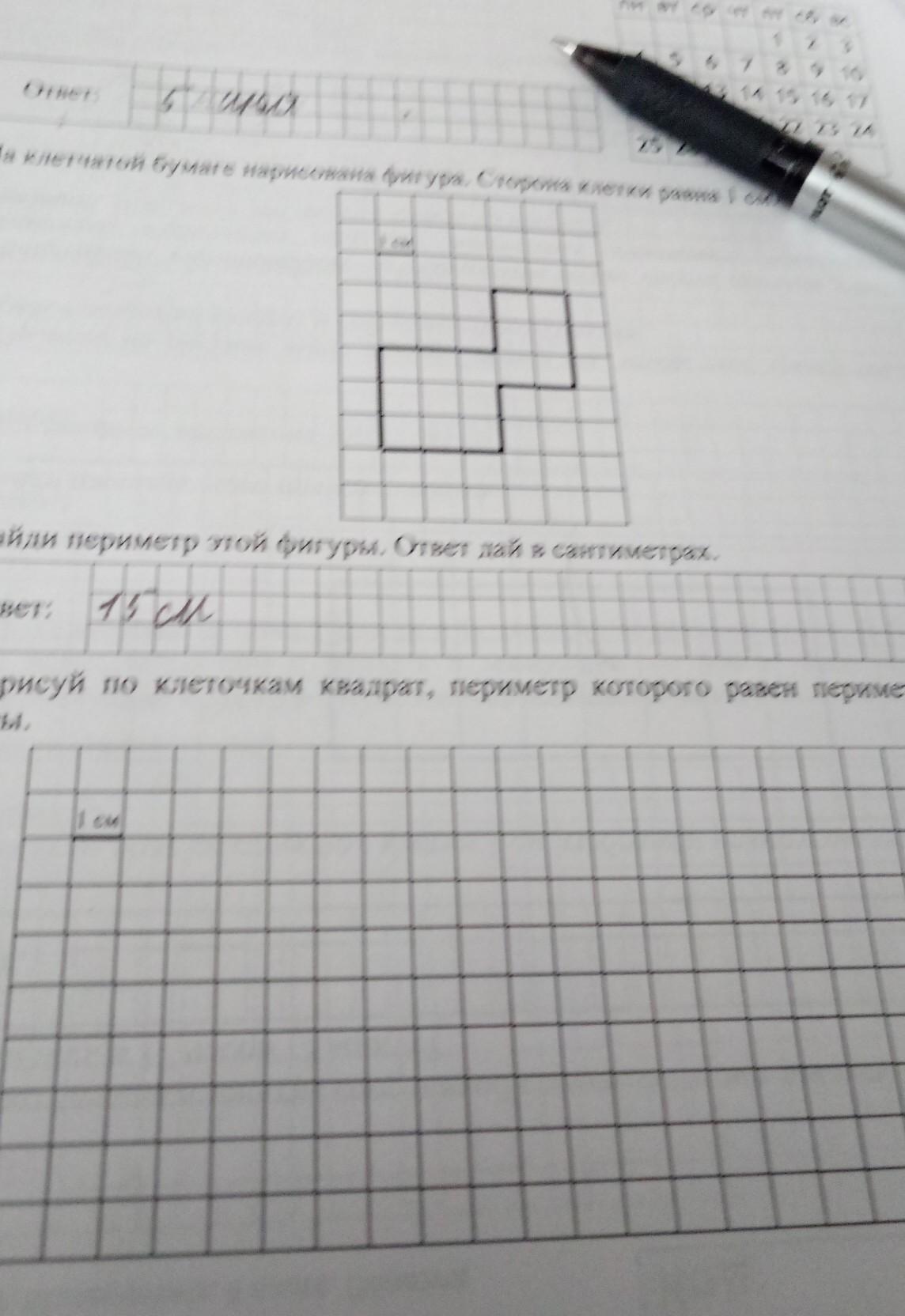 читы бумаге нарисована фигура сторона клетки 1 сантиметр найти периметр квадратных сантиметров в лесу по клеточкам квадрат периметр которого равен периметру этой фигуры