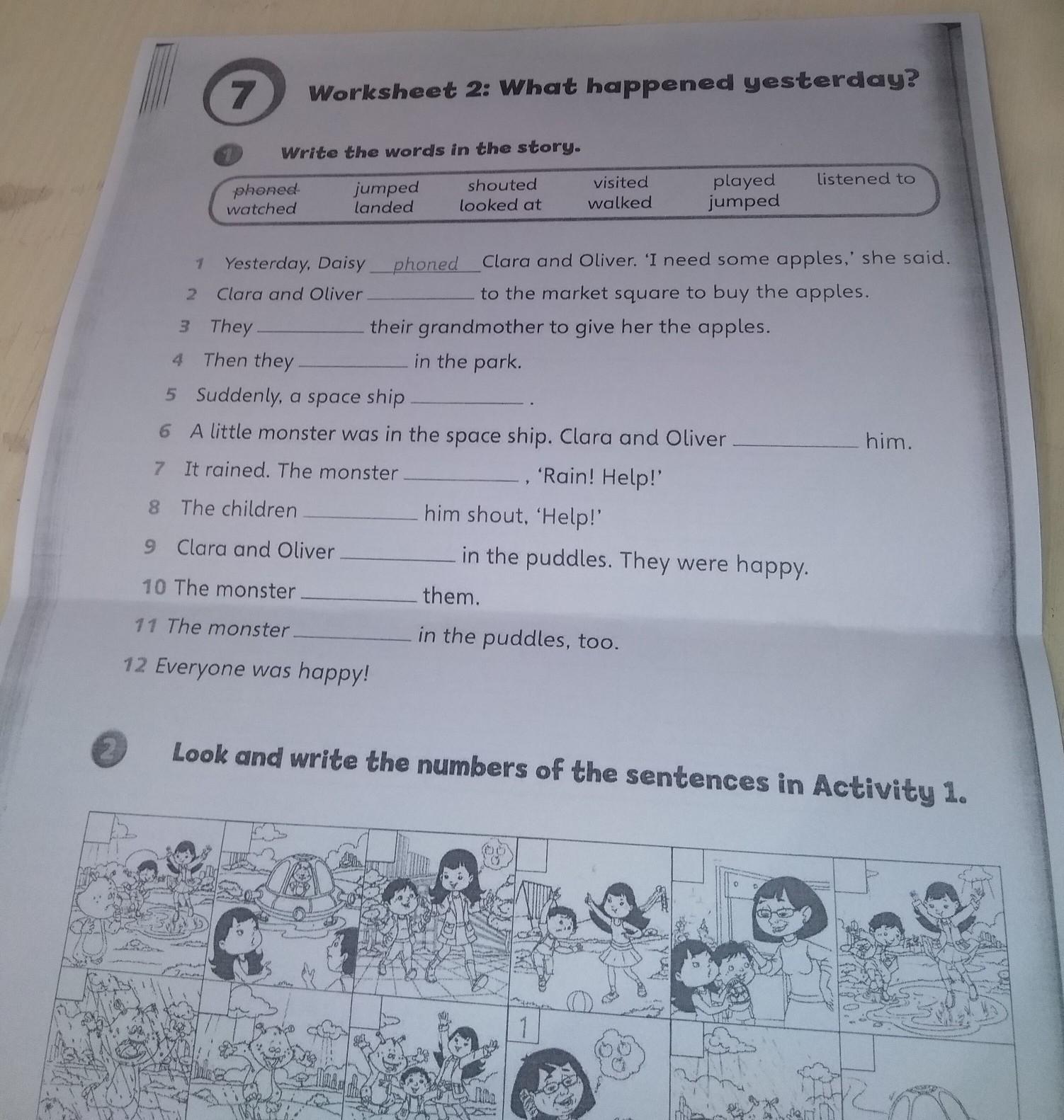 9. Клара и Оливер прыгали по лужам (jumped). Они были счастливы.