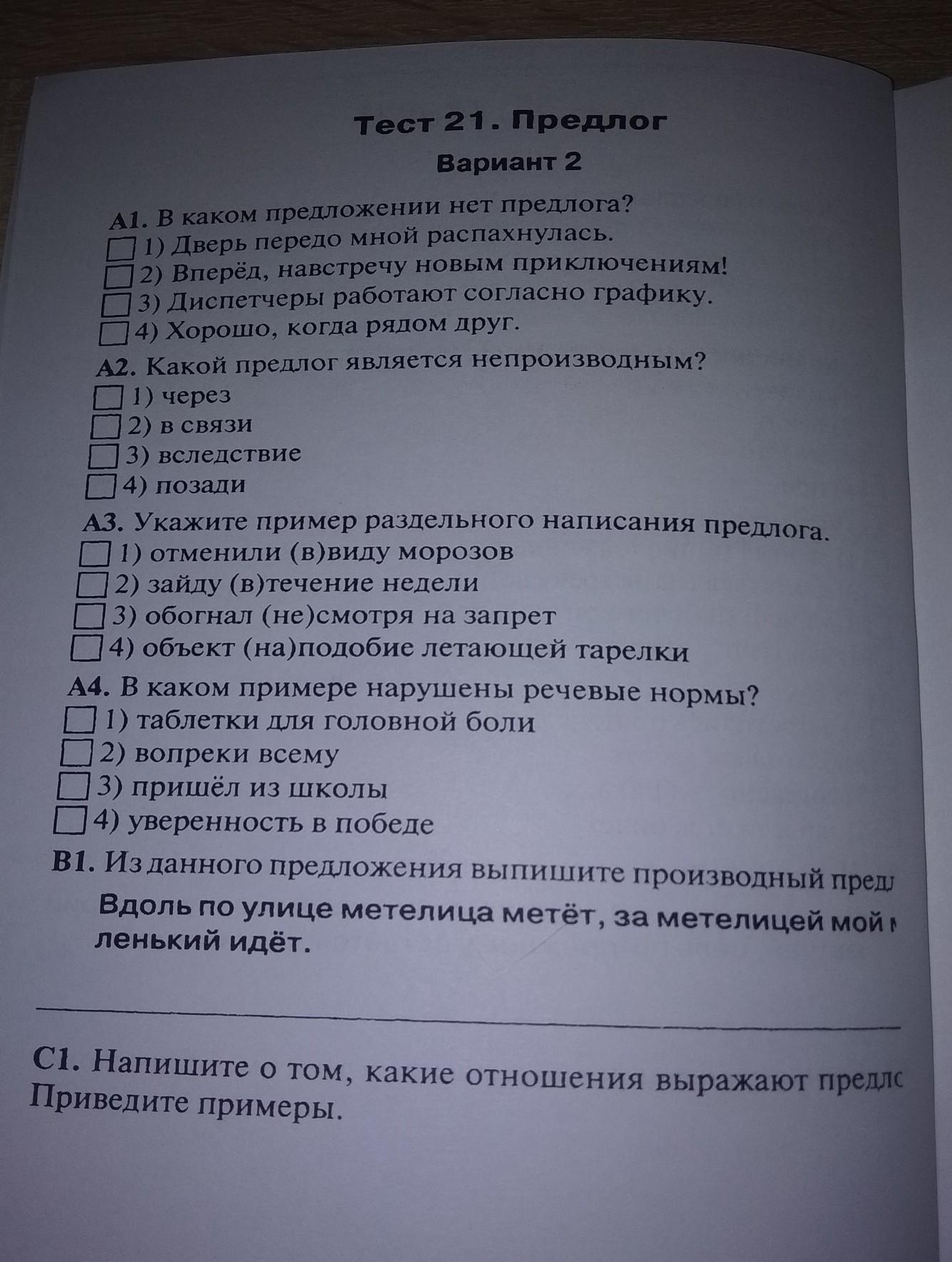 С1) 1 пример:предлоги могут выражать различные отношения между словами в предложени: пространственые,временые,причинные,целевые,меры и степи,объектные и другие...