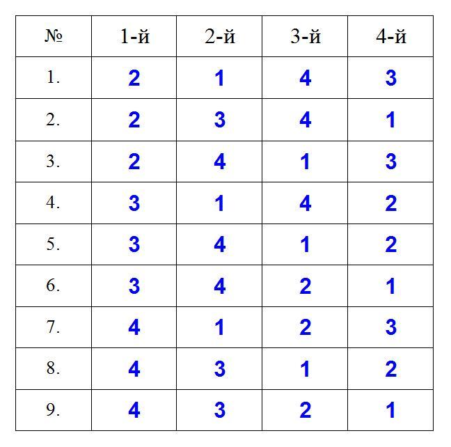 Все возможные варианты раздачи тетрадей ученикам так, чтобы ни один из них не получил свою тетрадь (числа обозначают номера тетрадей, в верхней строке - номера учеников): см. рис.