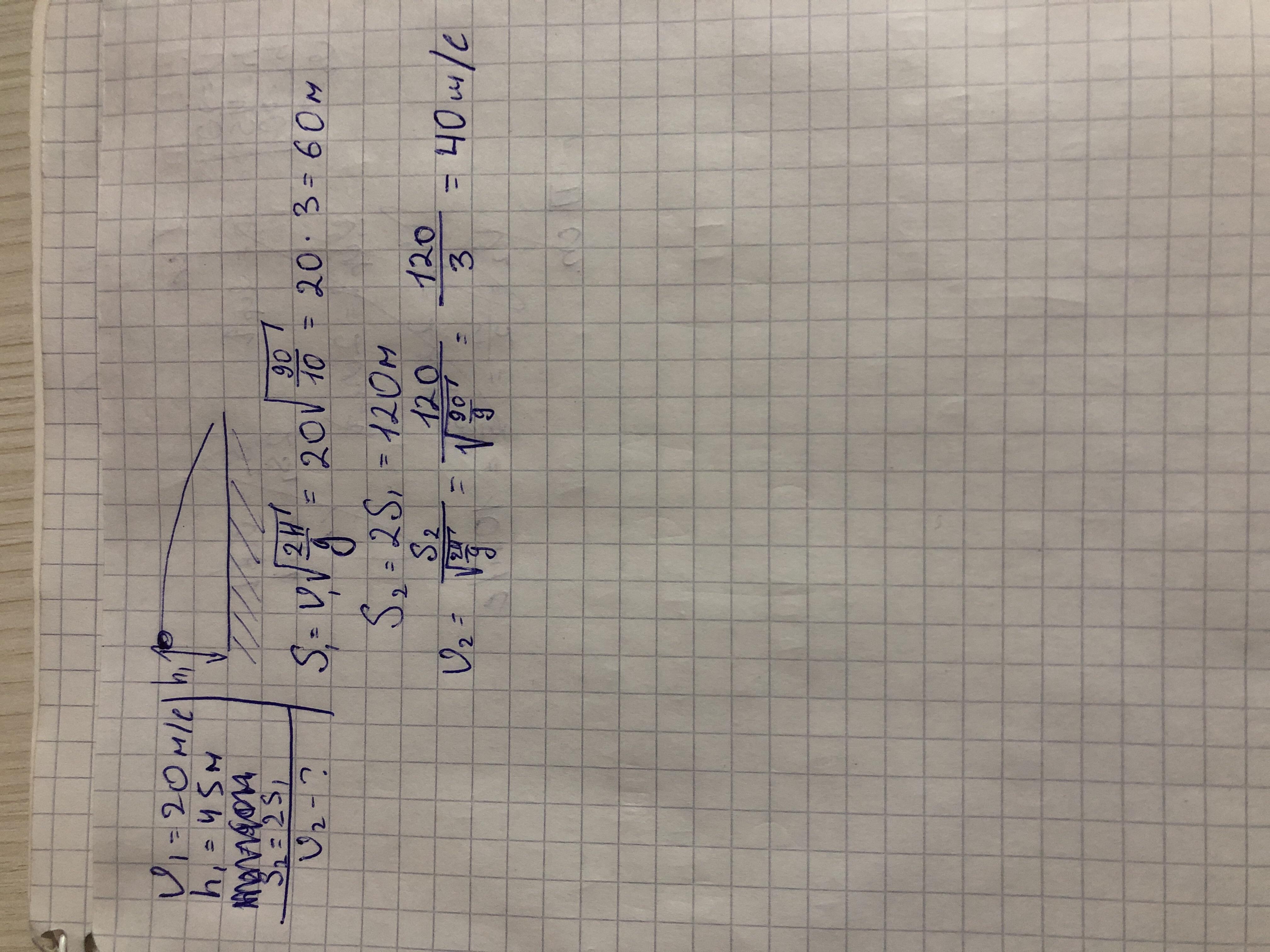 Тіло кинули горизонтально зі швидкістю 20м/с з висоти 45м. З якою швидкістю треба кинути це тіло, щоб дальність польоту зросла вдвічі?