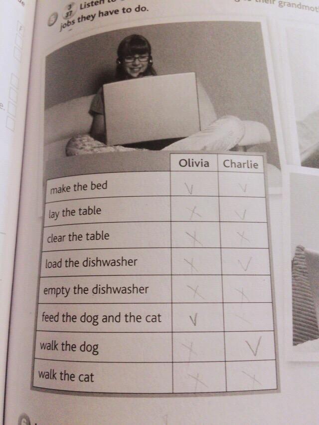 B:No, Olivia doesn't, but Charlie has to do it.(согласно твоим ответам на 1-ом фото)