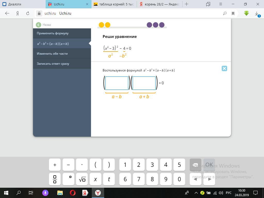 (x² - 3 - 2)(x² - 3 + 2) = 0