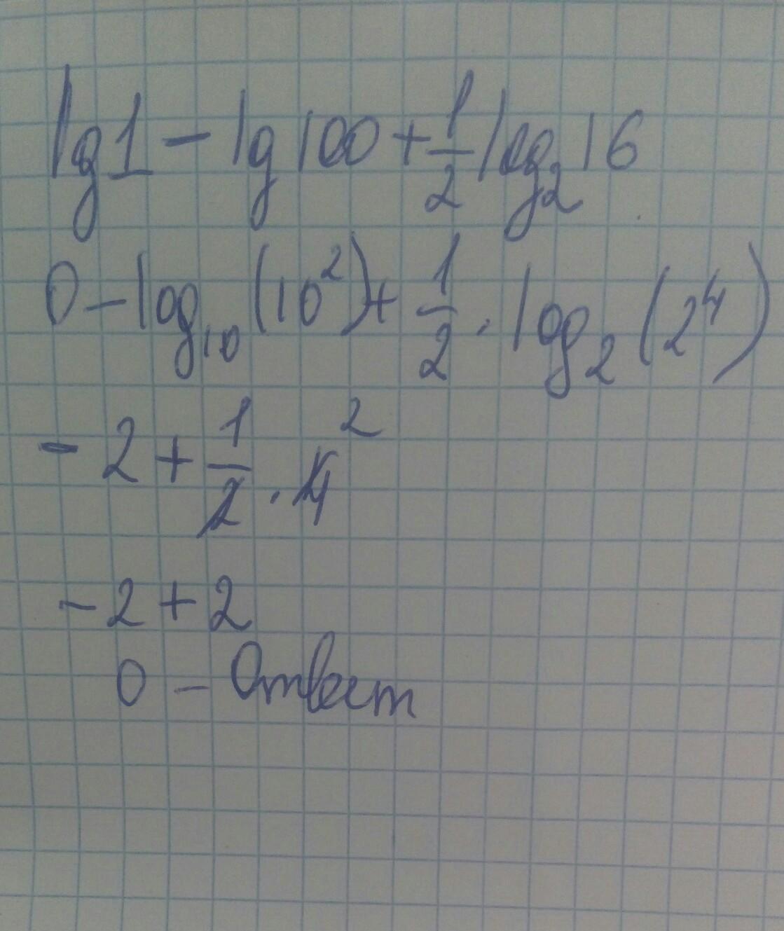lg100 . В какую степень нужно возвести 10, чтобы получить 100 ? Ответ : во вторую . Поэтому lg100 = 2.