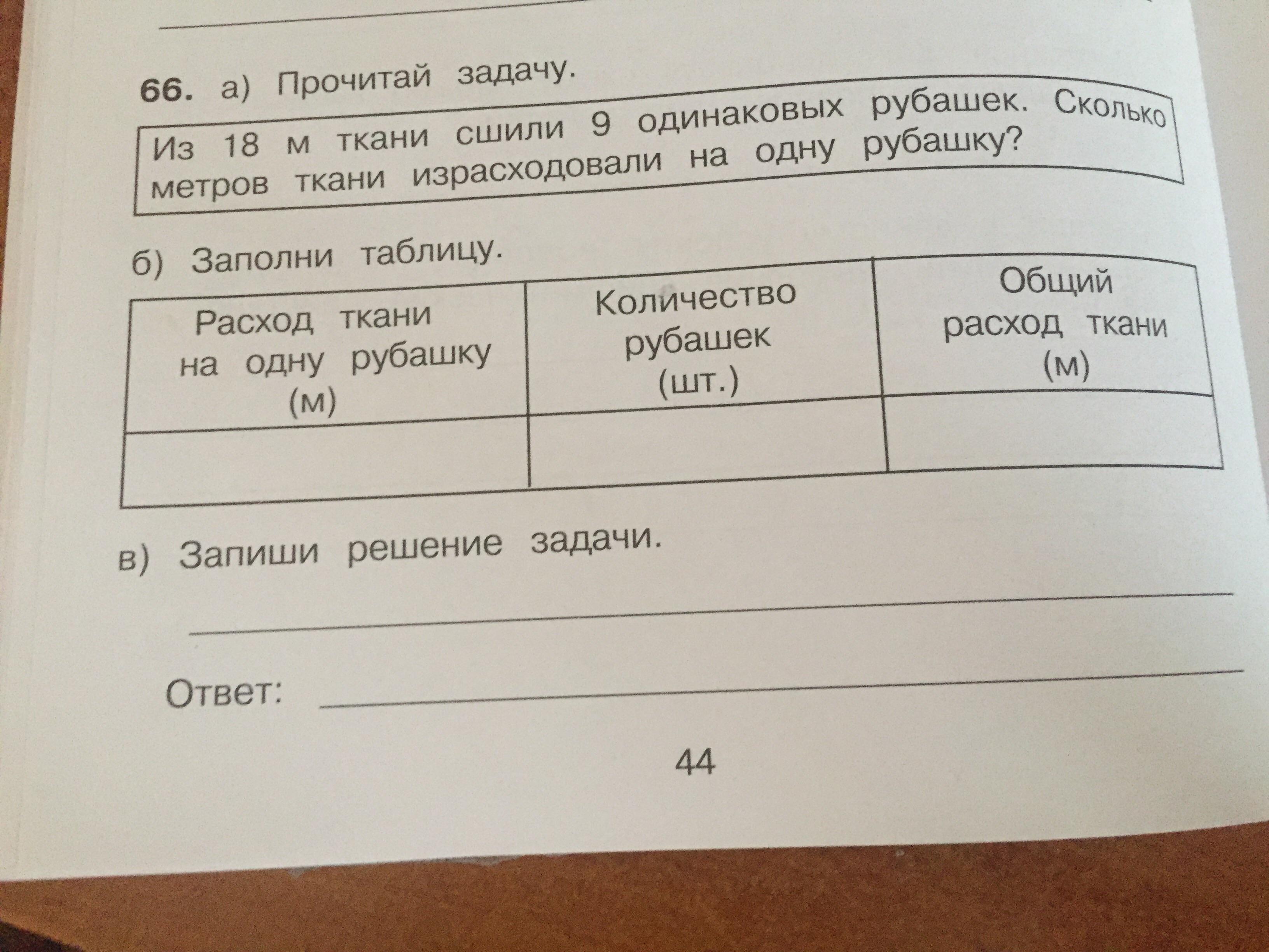 б)расход ткани на одну рубашку-2м
