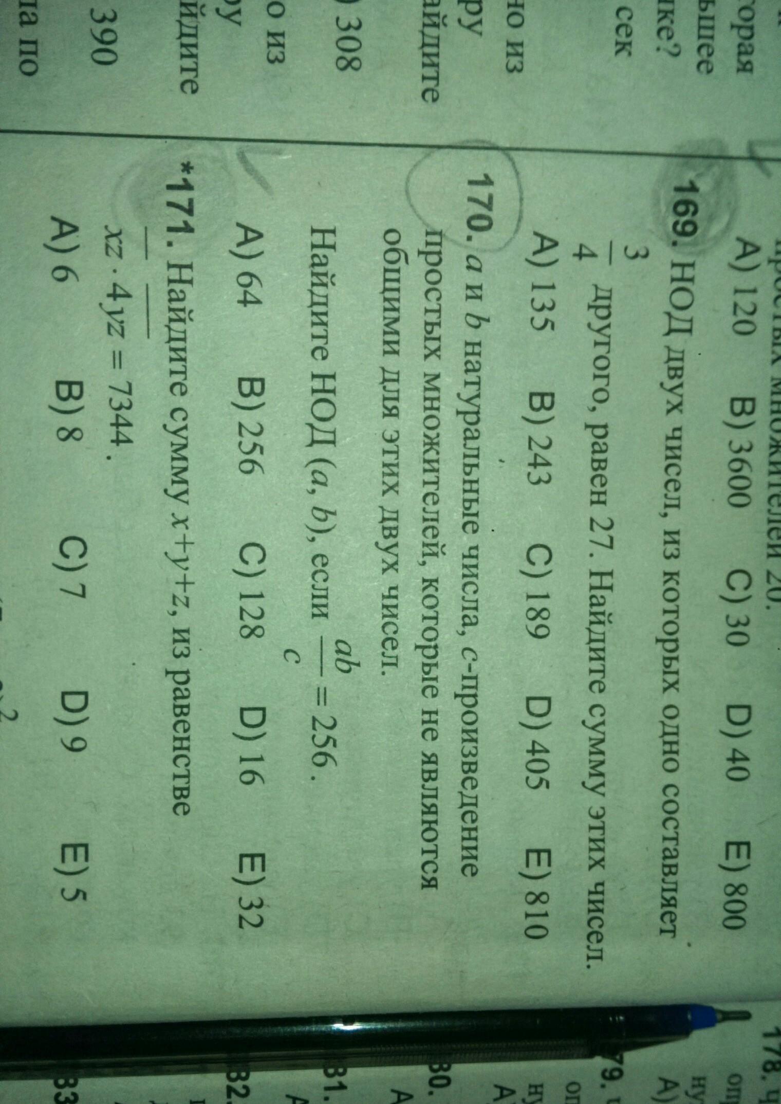 Ответ:169(c) Пошаговое объяснение:Пусть одно число равно х, тогда другое число по условию равно 3х/4; по условию эти числа делятся на 27. Тогда 3х/4 можно записать как 3х/4=27*у; а другое число - как 3х=27*4*у; х=27*4*у/3; чтобы наибольшим делителем этого числа было число 27, у должен быть равным 3 (у=3); х=27*4*3/3=27*4=108; одно число равно 108; тогда другое число будет 27*у=27*3=81; а их сумма будет равна: 108+81=189; ответ: 189