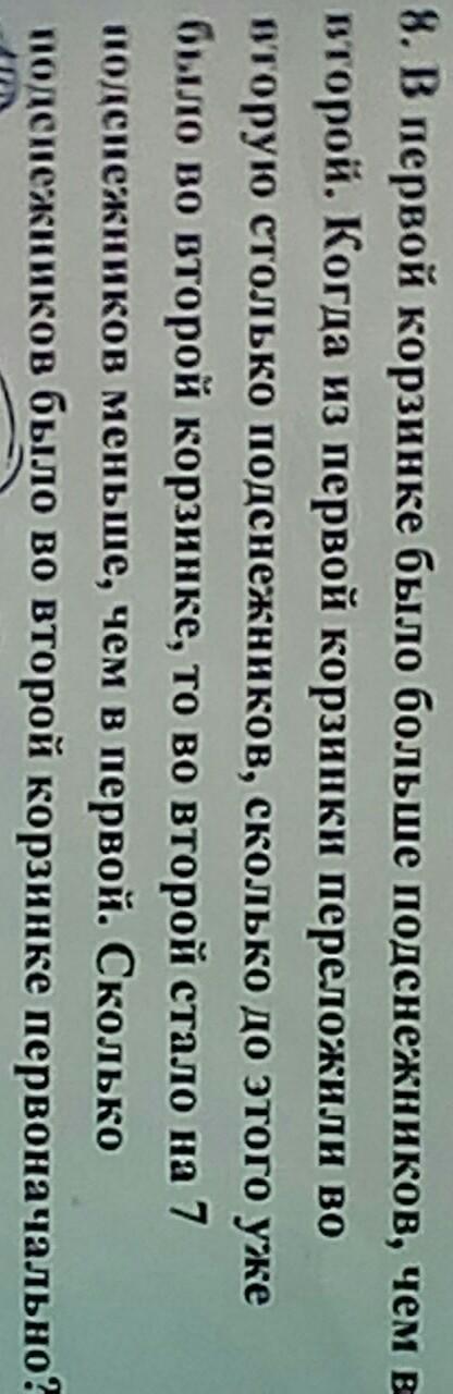 ответ: во второй корзине было изначально столько, сколько в первой минус 7 и все разделить на 3