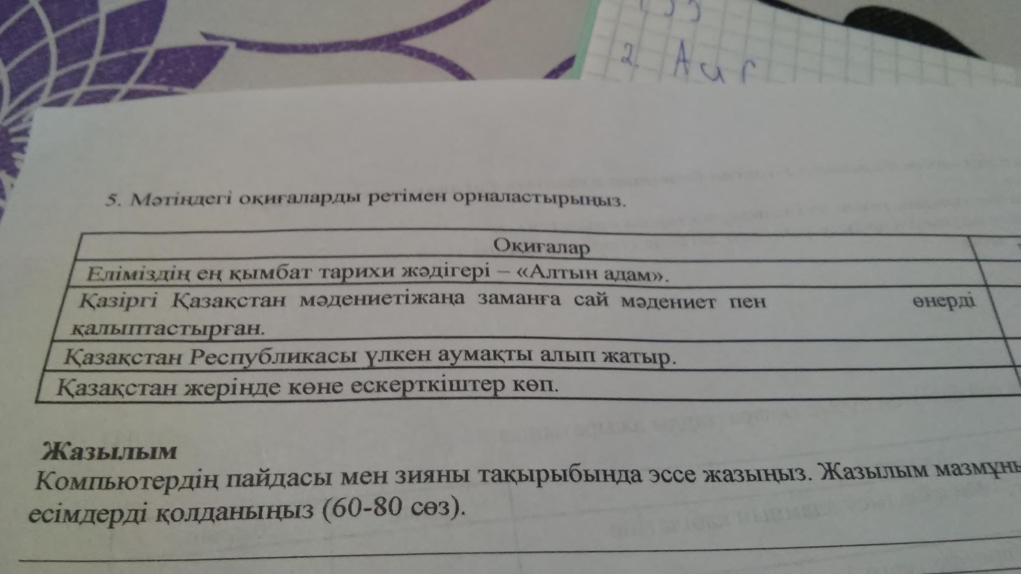 Қазақстан Республикасы үлкен аумақты алып жатыр. Қазіргі Қазақстан мәдениеті жаңа заманға сай мәдениет пен өнерді қалыптастырған. Қазақстан жерінде көне ескерткіштер көп. Еліміздің ең қымбат тарихи жәдігері-"Алтын адам".