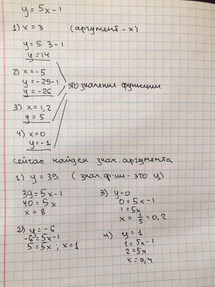 значения аргумента, которые соответствуют значениям функции равным: 39; -6; 0; 1.