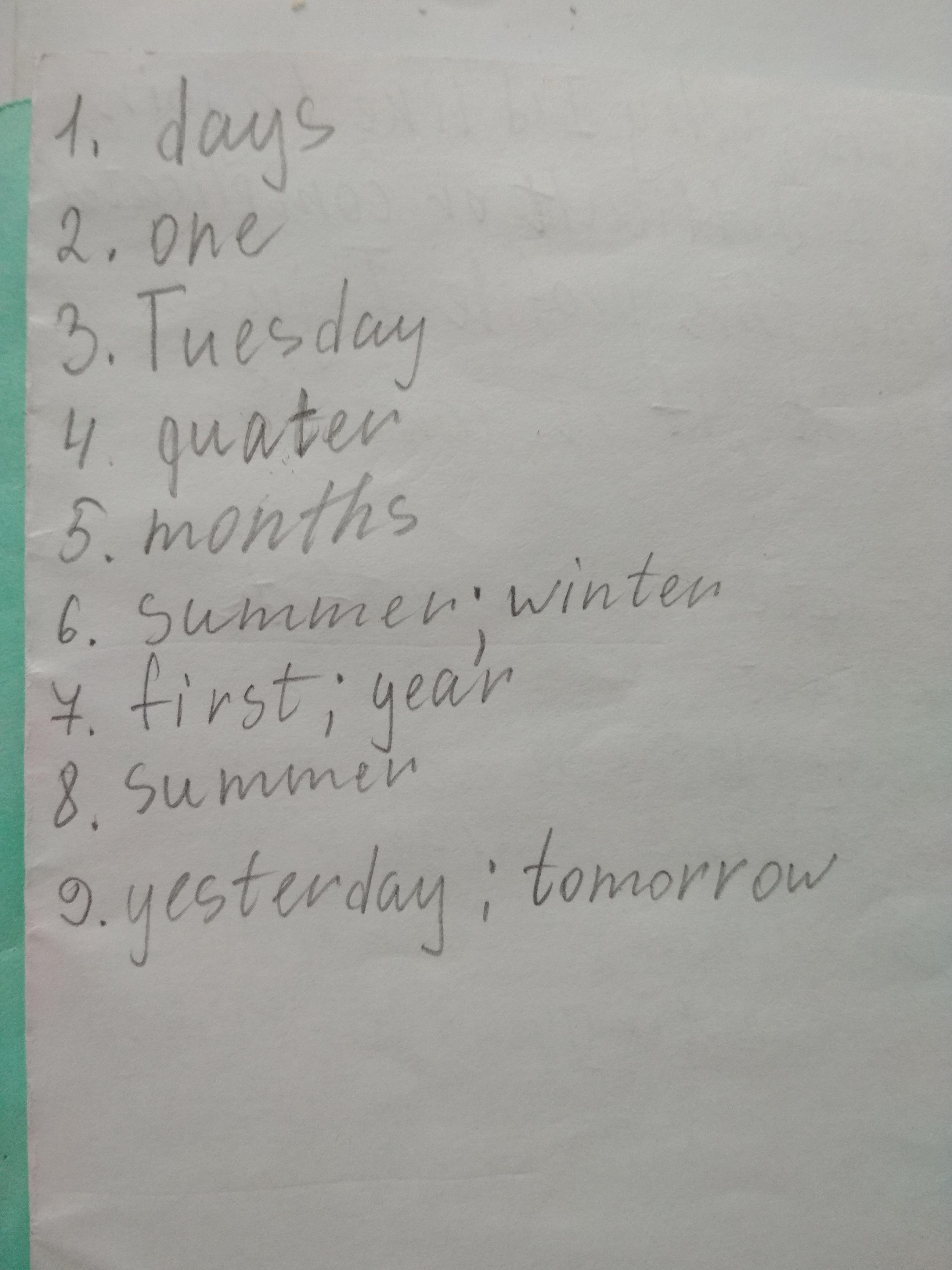 9. Today is Thursday, ... was Wednesday, and ... will be Friday.